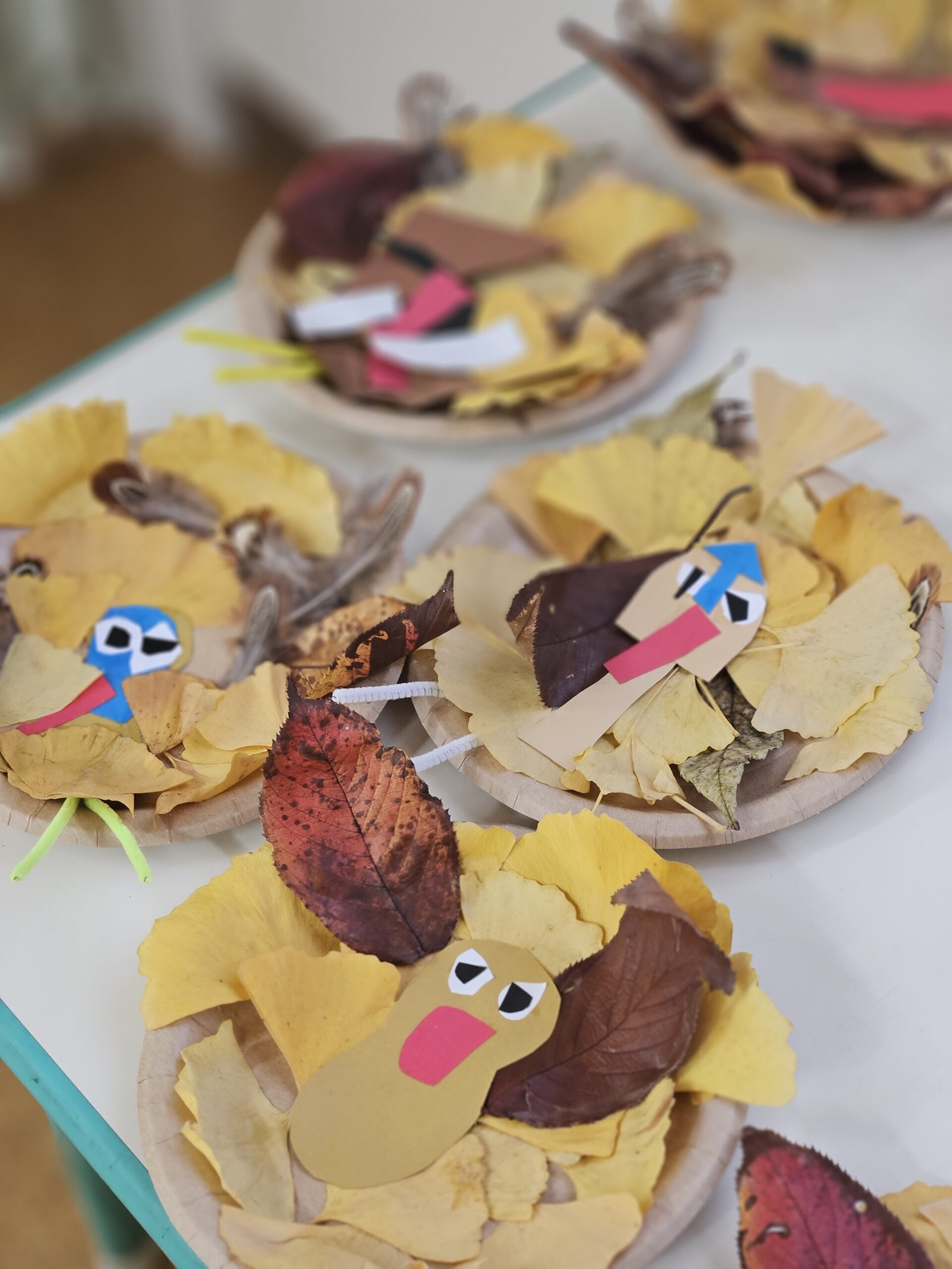 As part of our Thanksgiving celebration, the children created their own “turkeys” using ginkgo and zelkova leaves.