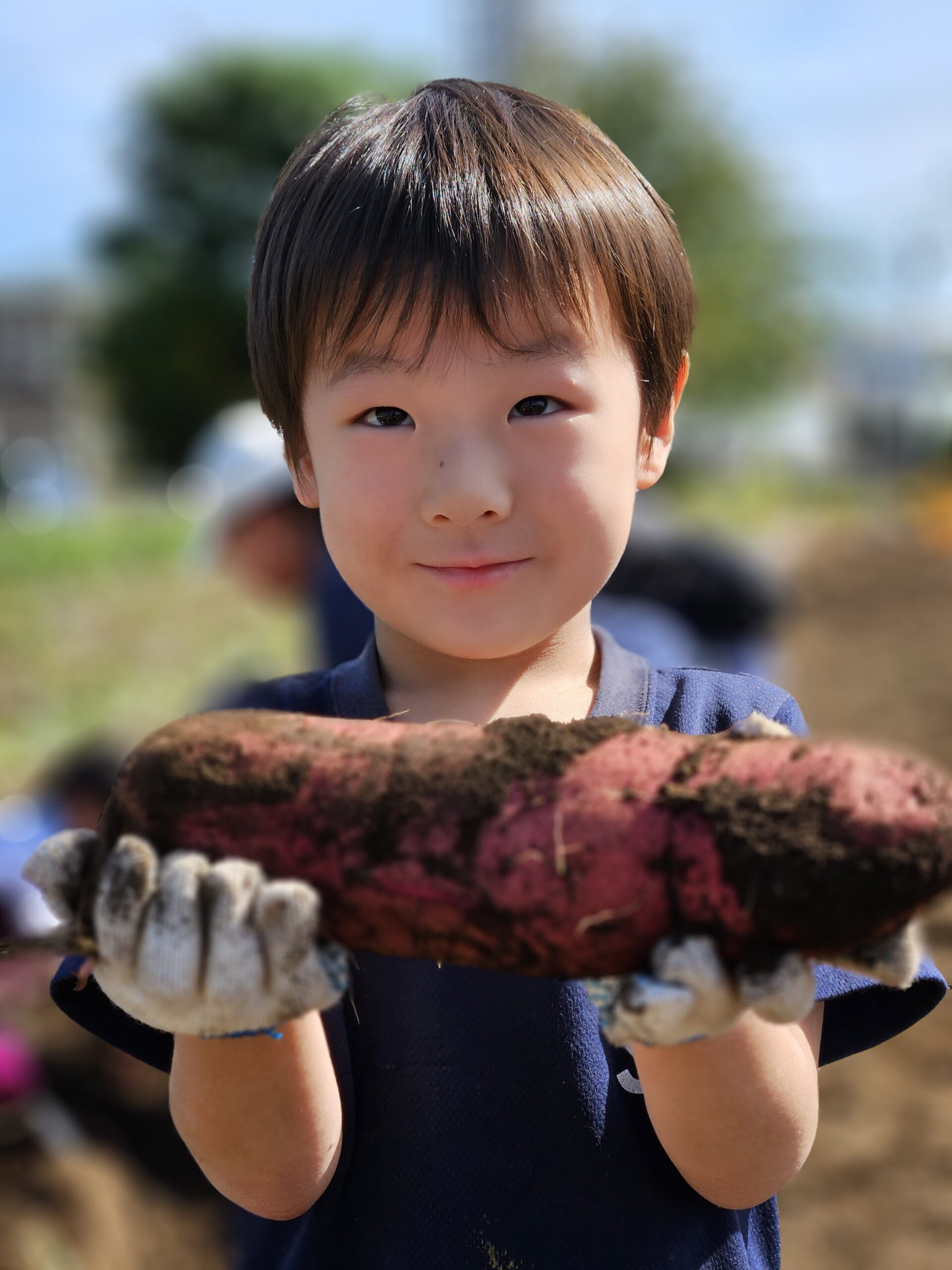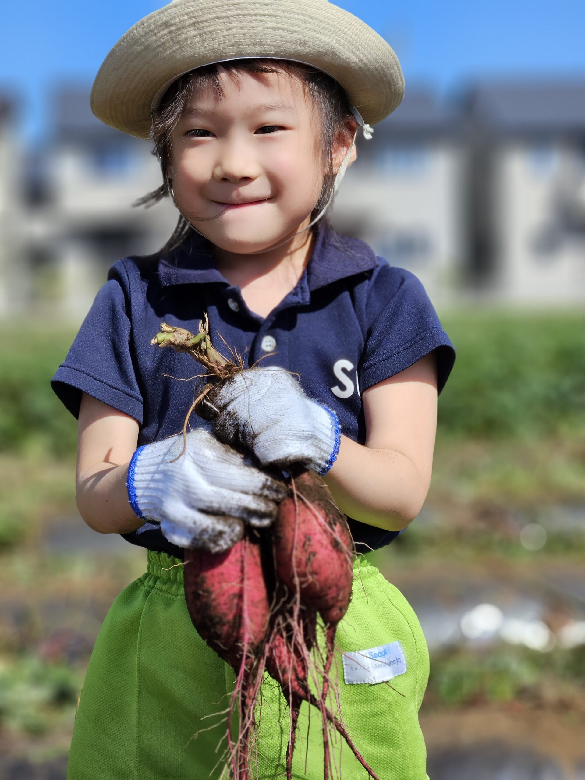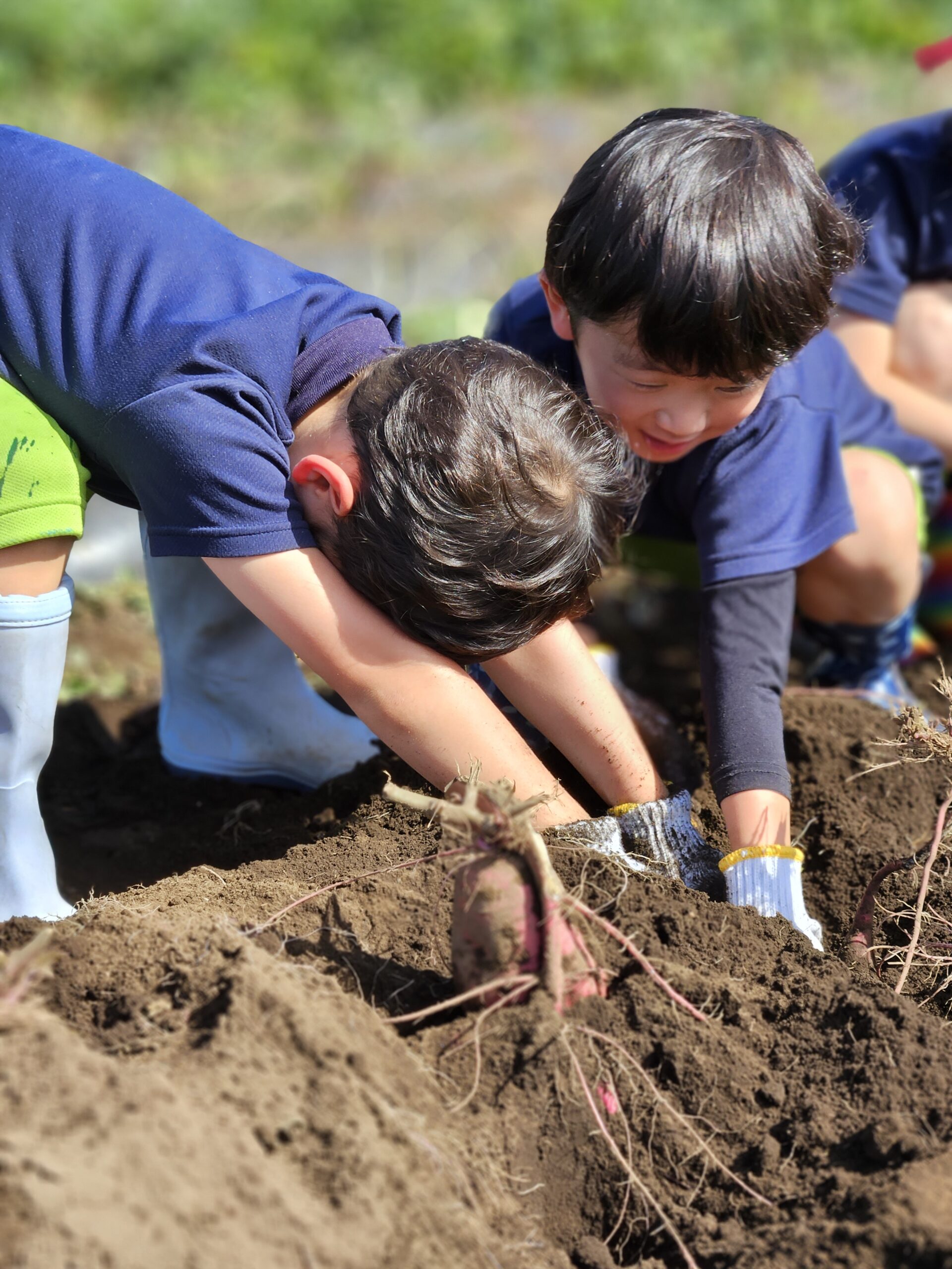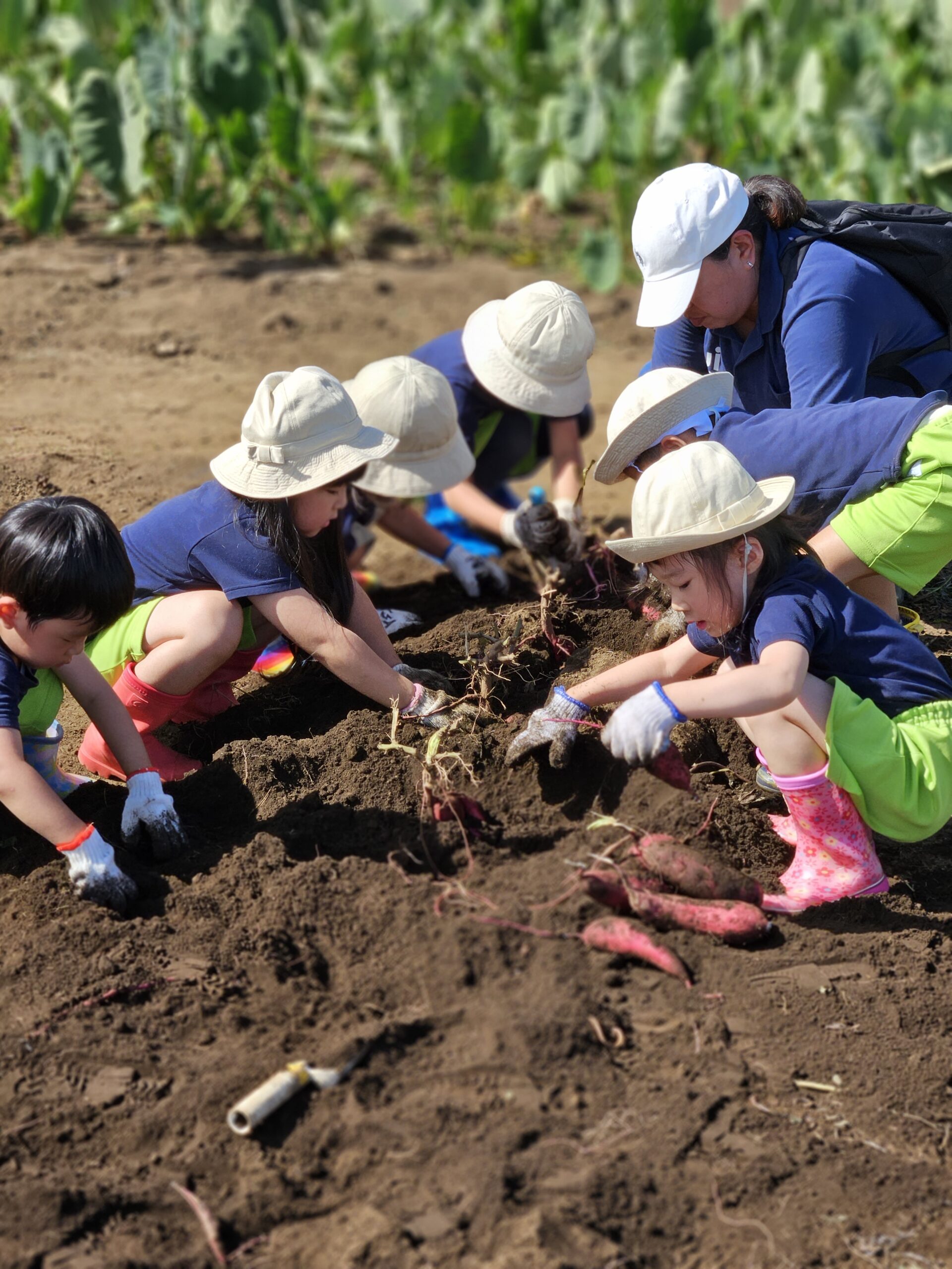 Under a beautifully clear blue sky, the children dug up many large sweet potatoes and enjoyed the wonderful experience of connecting with nature.